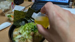 生姜チューブも投入しましたがニンニク同様、生姜も生でおろしたほうが旨さが引き立つと思います。中途半端に市販のものを使うとスープの味になじまないと思います。
