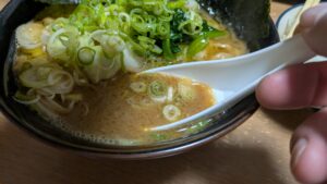 味変で冷蔵庫の中にあるニンニクチューブを入れてみます。ちょっと失敗したのが市販のものなので、ニンニクの本来の風味がないせいか、スープとちょっと合わなかった気がしました。