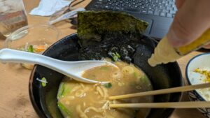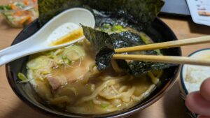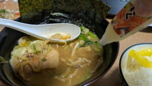 スープに浸った海苔をごはんに巻いて食べると、他店で食べた家系ラーメンとまた一味違う味で、とみ田オリジナルの唯一無二の醤油ダレと豚骨スープの味がごはんに染みて改めて「とみ田の家系だな」と思うくらい新しい味美味しさだなと感じます。