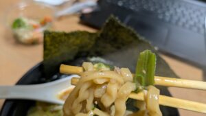 画像ではわかりにくいですが、麺の形状が通常の家系ラーメンのものより今まで見たことのないようなウェーブがかかっています。