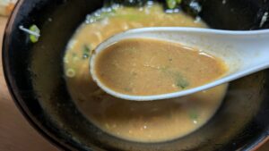 醤油はとみ田系列のお店で食べたことがある人は分かるかと思いますが、スープは家系ラーメンの規定概念の枠に収まっている分とみ田独特の濃い醤油の風味とエッセンスが加えられ