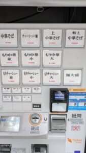 券売機のメニュー構成はこんな感じ。ちゃん系店標準メニューがラインナップ。店頭に先客で地方から来たであろう老夫婦一組と、男性一人客が待っている状況で先に券売機で食券を購入して待つことにします。