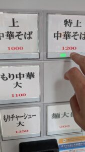 今回は外の気温がまだ暑いとはいえ、9月後半に入り若干気温が下がったので、右上の「特上中華そば並1200円」のボタンをプッシュ。