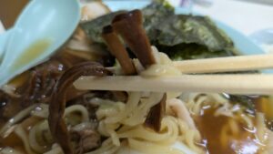 メンマも他のちゃん系店と同じく濃い醤油色に漬かっておりますが、しょっぱさとくどさはなく味付けは以外にも控えめでコリコリした食感は相変わらずたまんないです。