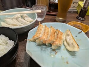 餃子の味は見た目の大きさは1個1個普段私が食べる餃子の1.5倍以上大きさですが食べてみるとにんにくは控えめで中の餡は野菜中心で以外にあっさり食べることができました。餃子の話はここまでとしといて…。