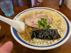 私はこの後も連食を控えていたのでお勧めの「ナンコツ」はスルーし、でもデフォで注文するのもどうかと思ったので、店員さんに「塩そば850円」麺量は並と「海老ワンタン200円」を追加トッピングで頼むことにしました。