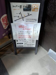 実は私【麺笑コムギの夢】さんは過去2回ほど夏場に訪問したことがありまして、店主さんが2026年1月末をもちまして閉店するということで、私事前に店主さんの野田さんとSNSで連絡して急遽仕事帰りに約6年ぶりに訪問することになりました。