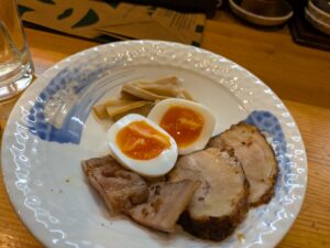 味玉は淡麗魚介スープに合うようにあえて薄味で仕上げていますが、スープに浸みた味玉は卵の甘みもあり、メンマは程よい固さで仕上がっています。