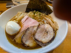 「特製淡麗煮干しそば」を食べてたんですけど、お酒が体内に入っていたせいか、煮干しのえぐみや尖った感じは全くなくじんわりしみじみと飲みやすく、前回訪問した時も確かに美味かったんですけど、今回最後に食べたのが一番おいしく感じましたね。