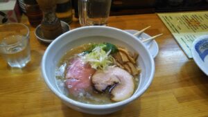 こちらが2回目訪問時の塩ラーメン。こちらも塩だれと魚介メインのスープのバランスが非常によく、また口当たりも良かったのでさらっとすすってしまいました。