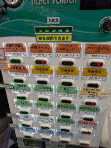 券売機は前回訪問時と変わらず、ただ今回は朝の訪問で店主のきよしさんがワンマン営業だったこともありごはんものの販売は中止になっています。