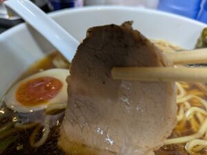 豚のもも肉チャーシューは、切り立てなのか若干の脂身の甘さとともにしっとりした食感があります。
