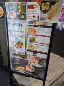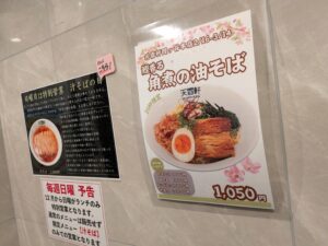 店頭は醤油、塩、2種類のまぜそばと真矢さんが生前こだわって作ったメニュー看板があります。