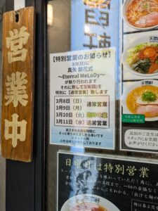 真矢さんの献花式に伴って休業日のお知らせのPOPも貼られていました。訪問当日は献花式が過ぎてしましましたが・・・。