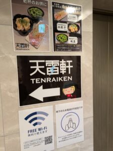 お店は地下にあるので階段で地下に降りると入り口案内と店内はWifi接続可能のPOPが貼られています。Wifi接続できるラーメン店は都内でも少ないですが、真矢さんの心配りが感じられます。