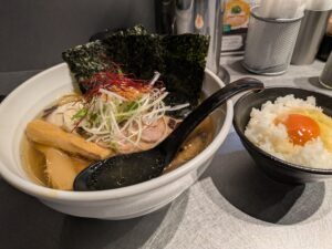 「琥珀醤油拉麺全部乗せ」と「卵かけごはん」