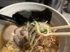 またスープに揚げネギが入っているので揚げネギの香ばしさと甘みがスープに溶け込んでるのがいいアクセントになっています。