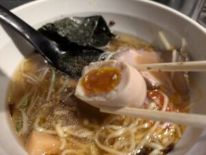 味玉は特筆するところはありませんが、中の黄身は半熟で程よく味が染みています。