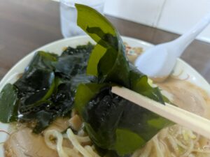 後半に食べ進んでもこのように麺と同じくらいのわかめが大量に入っています。