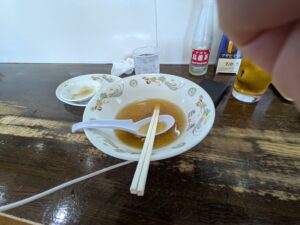 ラーメン自体は非常にあっさりしていますが、当日昼間の気温が25℃くらいだったのでなぜか追加でウーロン茶を頼んでしまいました。でもウーロン茶と佐野ラーメンの相性はいいですね。
