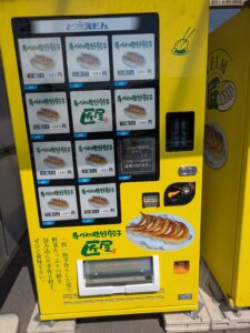 開店時間になったのでお店の前にやってきました。お店の前には冷凍餃子の自販機が設置されています。餃子が売りなのが見てわかります。