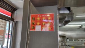 店頭のポスターで、「お土産」ラーメンは麺、スープだけでなくトッピングは全て入っています。帰る際店員さんに味の調節の仕方を教えてもらったところ、かなり事細かに親切に説明していただきました。さらに